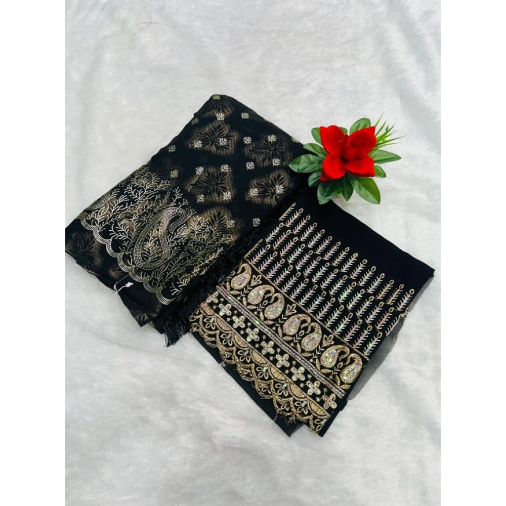 Women's Embroidered Georgette Saree With Unstitched Blouse (Black, 5-6 Mtrs)
