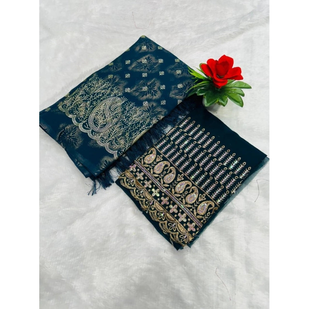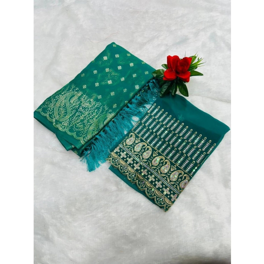 Women's Embroidered Georgette Saree With Unstitched Blouse (Dark Green, 5-6 Mtrs)