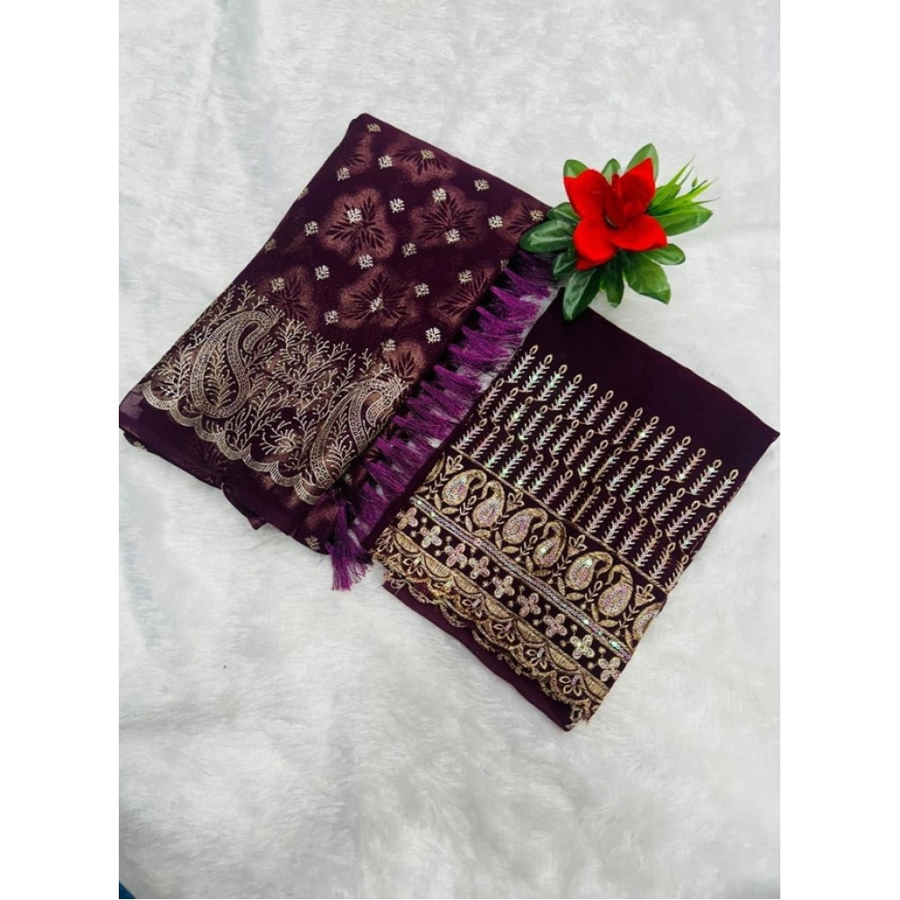Women's Embroidered Georgette Saree With Unstitched Blouse (Purple, 5-6 Mtrs)