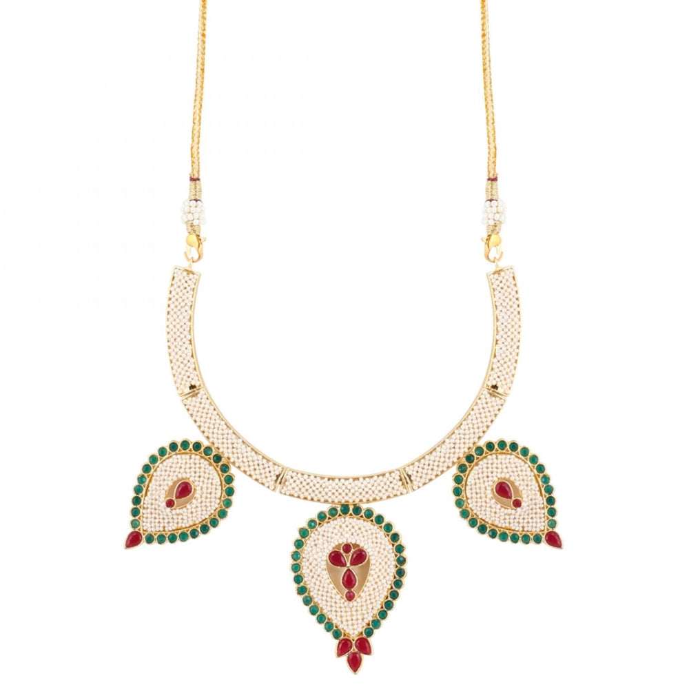 Generic Gold-Plated And Jadau Choker Necklace With Earrings Set For Women(Color: Multi color White beads, Type: Necklace SetMaterial: Gold PlatedOccaciation:...