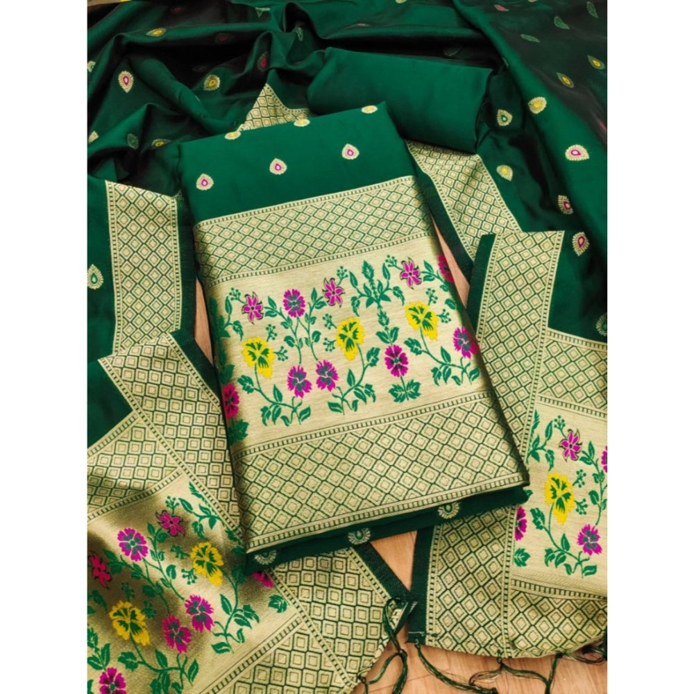 Women's Banarasi Silk Printed Unstitched Salwar Suit Material With Dupatta (Bottle Green, 3Mtrs)