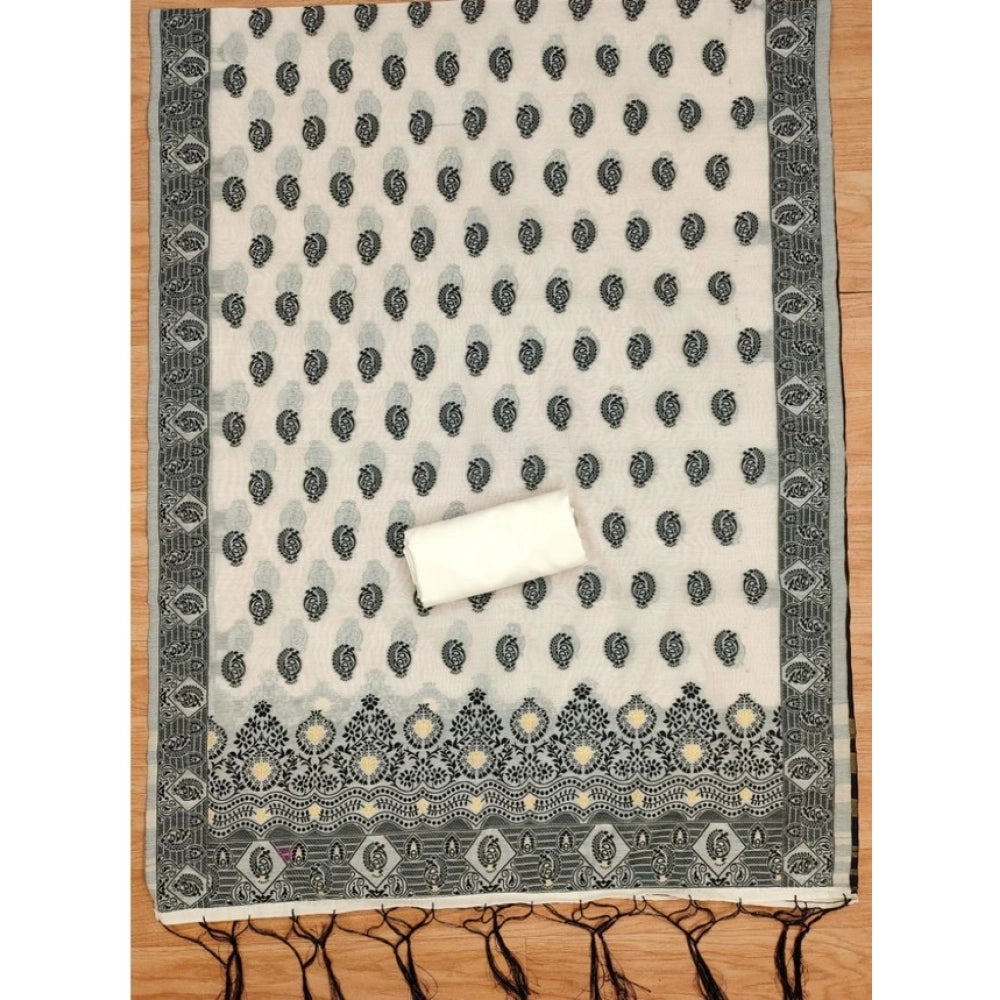 Women's Banarasi Silk Printed Unstitched Salwar Suit Material With Dupatta (Black, 3Mtrs)