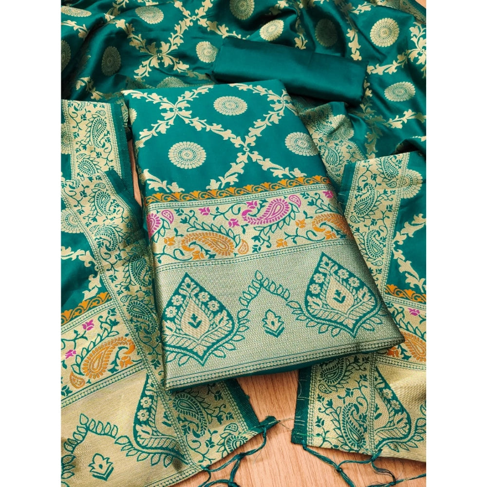 Women's Banarasi Silk Printed Unstitched Salwar Suit Material With Dupatta (Rama, 3Mtrs)