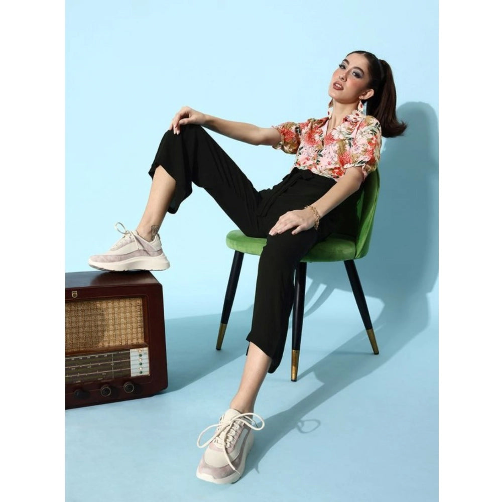 Women's Polyester Printed 3/4th Sleeve Jumpsuit (Peach - Black)