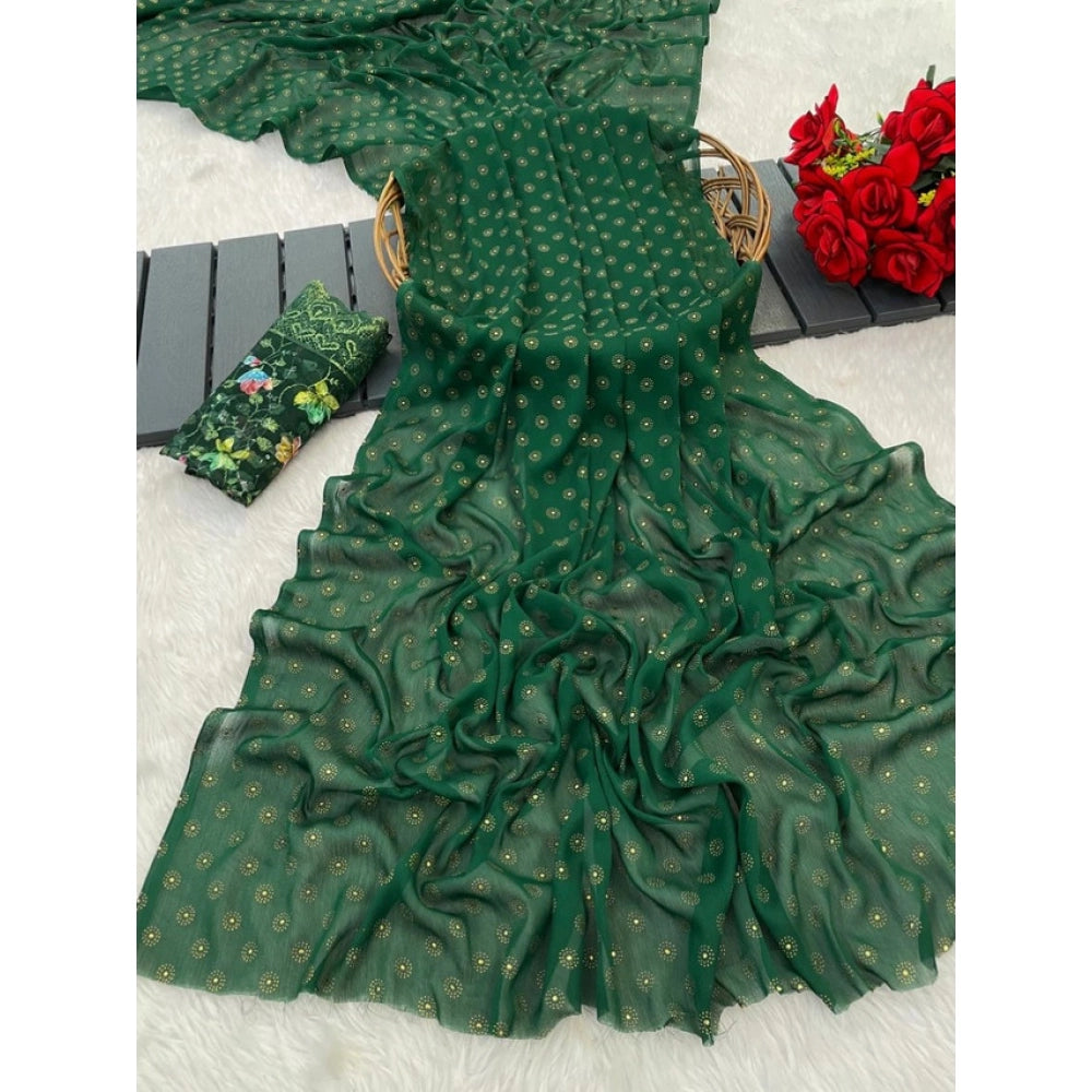 Women's Printed Brasso Saree With Unstitched Blouse (Green, 5-6 Mtrs)