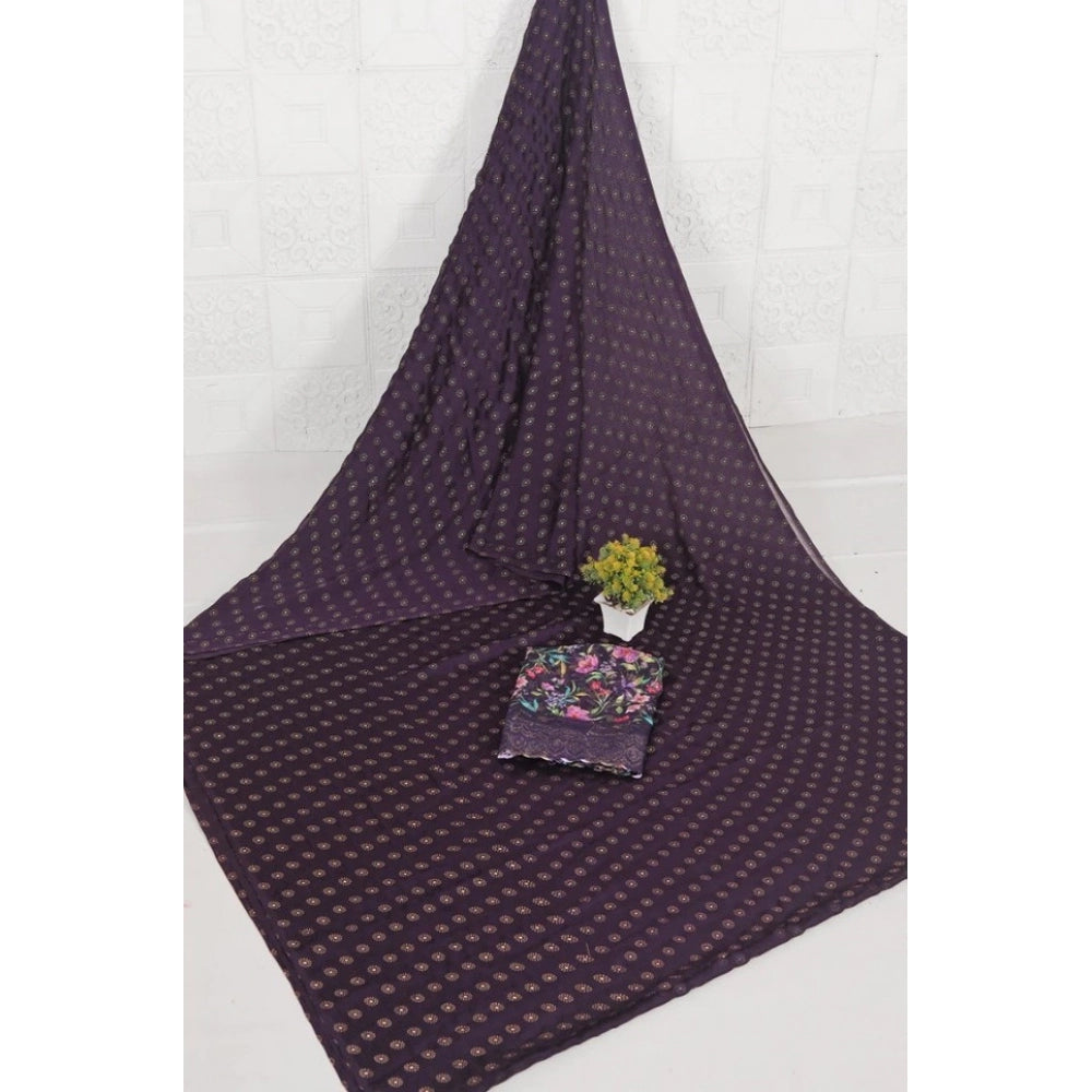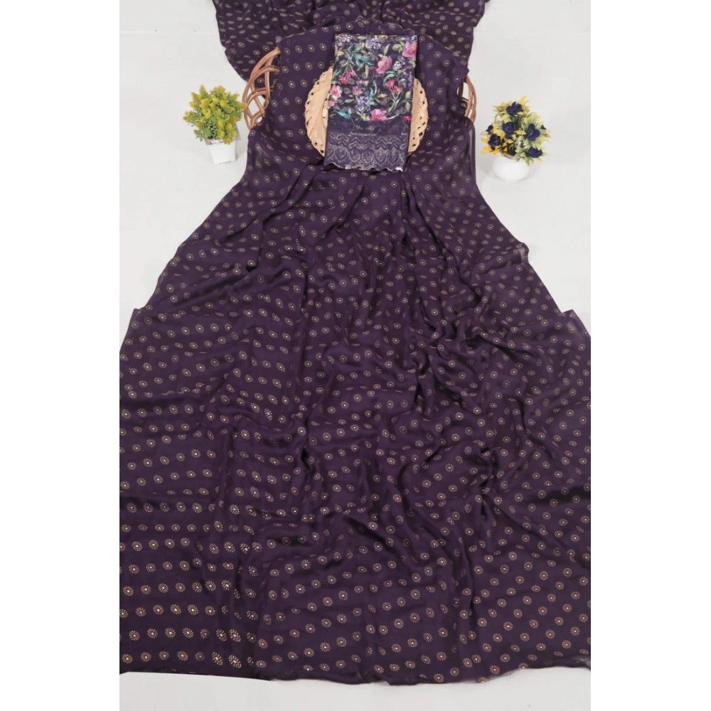 Women's Printed Brasso Saree With Unstitched Blouse (Magenta, 5-6 Mtrs)