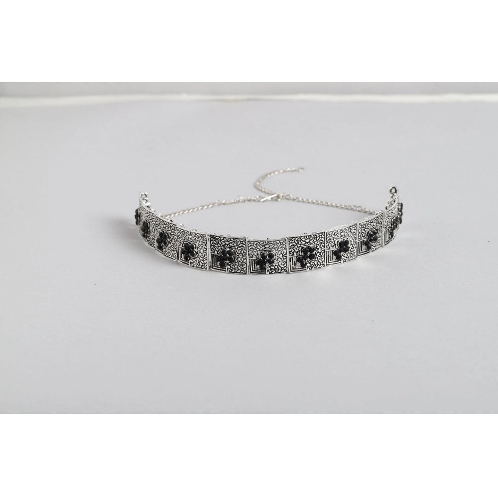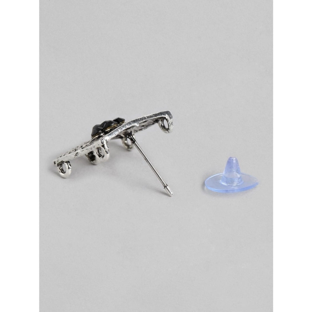 Women's Rose Gold Plated Alloy Necklace & Earings Set (Silver & Black)