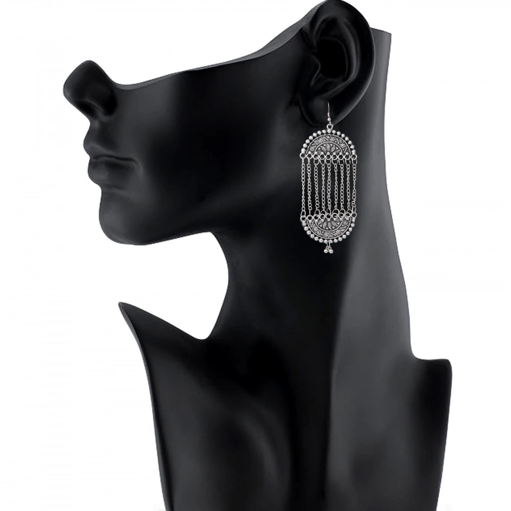 Women's Silver Plated Hook Dangler Hanging Earrings-Silver