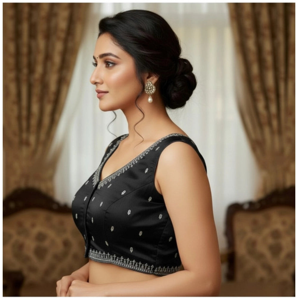Women's Zimmi Choo Sequin Work V-Neck Padded Blouse (Black 38 Ready (Self Alterable 36–40)